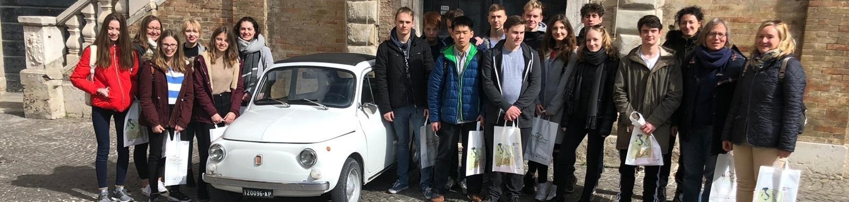 Am Sonntag, den 10. März 2019, kamen wir, 17 Schülerinnen und Schüler des Platen-Gymnasiums, nach einer langen Reise endlich in Fermo an. In der darauffolgenden Woche haben wir nicht nur neue Freundschaften geschlossen und unsere Partnerschule kennengelernt, sondern uns auch sehr viele beeindruckende Orte angeschaut, wie beispielsweise die historische Bibliothek in Fermo, die Redaktion der Zeitung „ Il Resto del Carlino“, die Zisterne von Fermo und eine Hutfabrik. Ein weiteres Highlight war der Tagesausflug nach Urbino, Gradara und Rimini. An den freien Nachmittagen machten viele von uns immer etwas mit den anderen Austauschpartnern. Sie zeigten uns unter anderem die schönsten Küstenorte wie San Benedetto del Tronto oder Porto San Giorgio. Auch in unseren Gastfamilien haben wir uns sehr wohl gefühlt, da sie uns mit offenen Armen empfangen haben. Die italienische Küche ist etwas, was uns sehr beeindruckt hat, es gab fast immer mehrere Gänge, die alle immer extrem gut geschmeckt haben, was sich nach einer Woche auch auf der Waage bemerkbar gemacht hat... Zusammenfassend kann man sagen, dass es eine wunderschöne Woche war, weshalb sich auch keiner gewundert hat, als beim Abschied ein paar Tränen flossen.