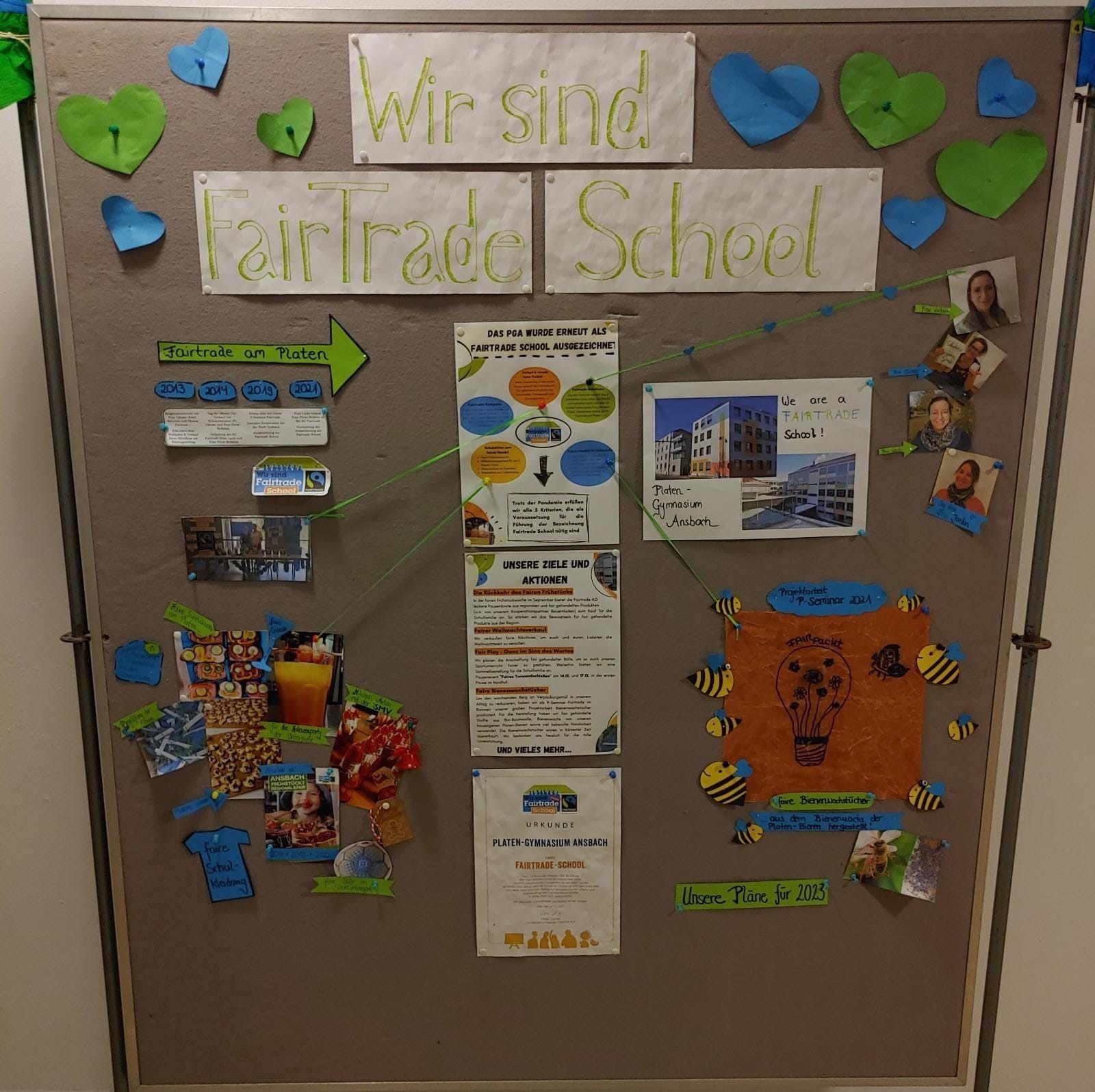 Der Titel Fairtrade School wird stets für zwei Jahre vergeben. Nach Ablauf dieser Frist müssen Fairtrade Schools nachweisen, dass der Einsatz für gerechten Handel im Schulalltag und bei besonderen Aktionen weiterhin eine entscheidende Rolle spielt. Aufgrund unseres wöchentlichen Pausenverkaufs (aktuell fairer Montag und fairer Freitag), zahlreicher Aktionen im Schuljahr und der engen Kooperation mit der Stadt Ansbach gelingt uns dieser Nachweis stets problemlos. Zudem wird fairer Handel auch stets im Unterricht thematisiert und ein P-Seminar zum Thema Fairtrade angeboten.