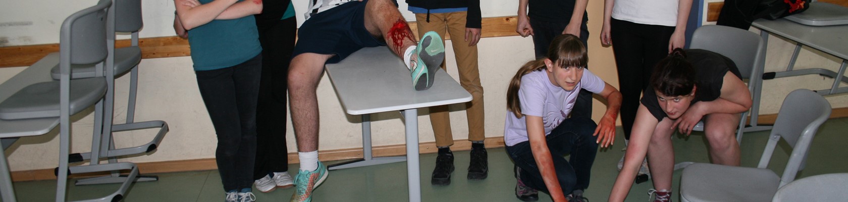 Der Sanitätsdienst des Platen-Gymnasiums Ansbach veranstaltete am 25.6.2015 von 15:30-20:30 Uhr unter der Leitung von Johannes Schmidt, Matthias Goldbach (10c) und Raphael Leuner (Q12) eine großangelegte Übung mit dem Nachwuchs des THW sowie der Feuerwehren Ansbach, Hennenbach und Elpersdorf – natürlich begleitet durch erfahrene Kräfte! Rund 70 Einsatzkräfte waren an der von Matthias Goldbach eigens designten Aktion „Kids für Kids“ beteiligt, die dem Nachwuchs von Feuerwehren, THW und Sanitätsdienst die Möglichkeit gaben, den Ernstfall in einem auf ihre Möglichkeiten zugeschnittenen Rahmen in der Praxis zu proben – nah an der Realität, herausfordernd aber bewältigbar. Mittels Nebelmaschinen wurden Zimmer und Gänge verqualmt, mit Sichtweiten teils unter 30cm. Im Schulhaus waren Verletzte verteilt, die von der AG Schulspiel gemimt wurden. Die angenommene Lage war ein Brand A-Bau, acht Schülerinnen und Schüler wurden zunächst vermisst, waren im Gebäude eingeschlossen, teils verängstigt, teils nicht ansprechbar oder schwer verletzt. Wie sich für die Einsatzkräfte von den Feuerwehren, den Schulsanitätsdienst und das THW herausstellen sollte, belief sich die Zahl der Verletzten, die an der Sammelstelle vor der Mensa betreut wurden, letztlich auf elf, wobei auch Rettungsaktionen über die Feuertreppe, Steckleitern und die Bergung einer gestürzten Person aus dem 2m tiefen Schacht am B-Bau erforderlich waren. Das zusammen mit dem THW errichtete Zelt an der Verletztensammelstelle diente vorwiegend dem Training des Platen-Sanitätsdienstes, dessen Mitglieder sich dort um die Erstversorgung der Verletzten kümmerten. Von der Anamnese und der Koordination der Maßnahmen über das Anlegen von Verbänden bei verstauchten Knöcheln oder gar einem offenen Schienbeinbruch, von der Beruhigung verängstigter Kinder mit Kreislaufproblemen, der Versorgung einer Kopfplatzwunde oder großflächiger Brandwunden bis hin zu Beatmung und Herzdruckmassage war an Herausforderung alles vertreten. Gegen 20:00 Uhr war die Übung offiziell beendet; für das leibliche Wohl aller Beteiligten bei der Abschlussbesprechung sorgte schließlich unsere SMV. Die Übung war ein voller Erfolg und das Platen ist für den Ernstfall, der hoffentlich nie eintritt, auf jeden Fall gerüstet! Damit das so bleibt, suchen alle Stellen, also die Feuerwehren (jugend@feuerwehr-ansbach.de) sowie das THW und der PGA-Sanidienst dringend Nachwuchs!