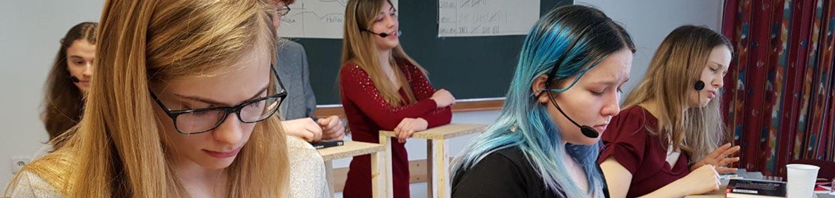 Vom Freitag, 2.3.18 bis zum Sonntag, 4.3.2018, zog die AG Schulspiel in die Jugendherberge Feuchtwangen, um dort das ganze Wochenende für die Auftritte am 10.3. und 17.3. zu proben. In der Bildergalerie findet ihr ein paar Impressionen von den Workshops und Proben.